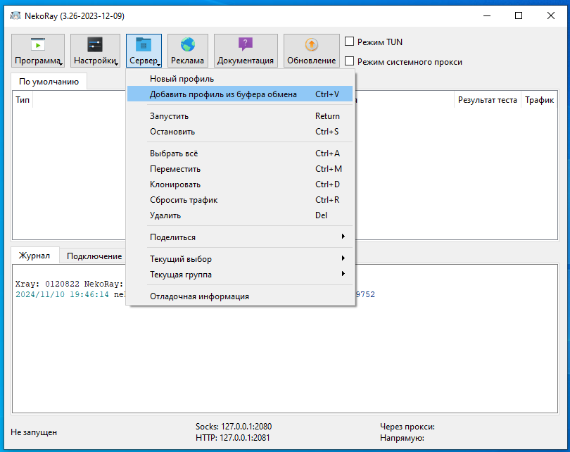 nekoray.exeНажмите на него правой кнопкой мыши и выберите пунктЗапустить от имени администратора